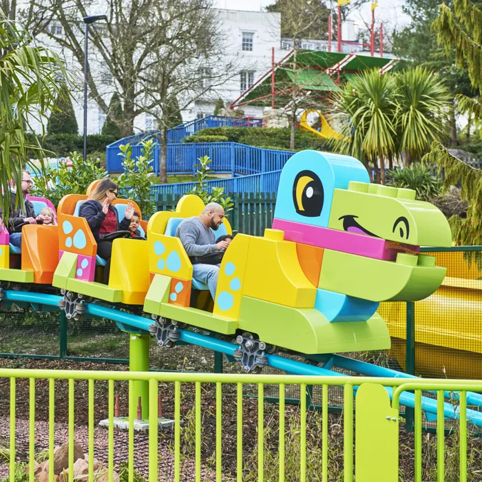 Take your seat upon the DUPLO brick Dinosaur as you soar round the Park.